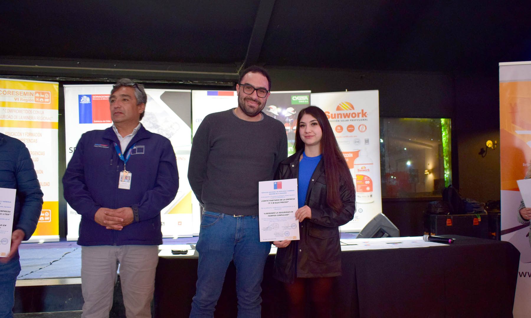 El día Martes 24 de Octubre nuestros colaboradores participaron del Seminario "Liderando la Seguridad en Tiempos Complejos" realizado por el Sernageomin y Coresemin en la Región de O'Higgins, donde se felicitó al Comité Paritario de nuestra Empresa por su esfuerzo, compromiso y participación en el seminario. Felicidades y agradecimientos a nuestra gente.